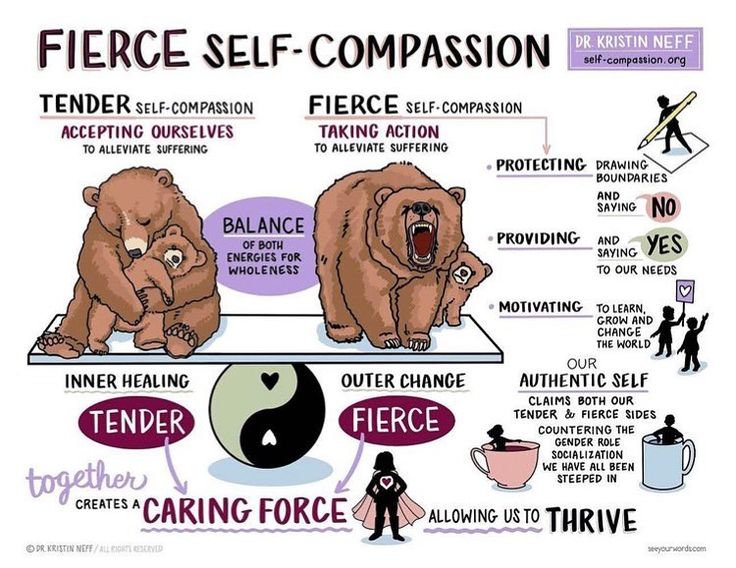 More recently Kristin Neff has written another book: Fierce Self-Compassion. To be honest, I was a little less enthusiastic about the book itself, but I am very glad that she named this other – but equally important!- aspect of self-compassion. There are many people, including a lot of women, who may really benefit from being encouraged to include in their practice the three aspects of fierce self-compassion that Kristine Neff names. She has a number of guided practices around this on her website that I’ve found super helpful. I feel the below sums it up pretty well…